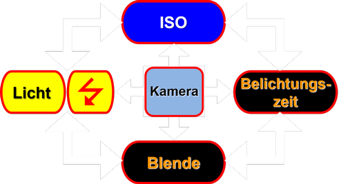 | Licht | Blende | Belichtungszeit | ISO-Wert |