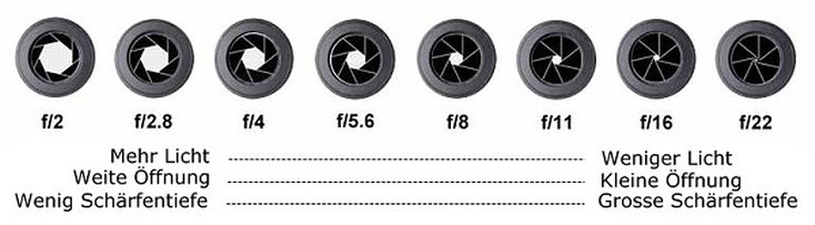 Während die Belichtungszeit regelt wie lange das Licht auf die lichtempfindliche Schicht wirkt, relgelt die Blende die Menge des Lichtes, das in dieser Zeit wirken kann.