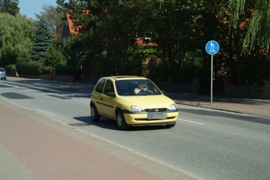 Während hier bei den Fotos versucht wurde das Motiv im Vordergrund, das rote Auto, in der Weitwinkel- (links) und in der Teleaufnahme (rechts) möglichst gleich groß erscheinen zu lassen, kann man am Hintergrund deutlich den großen bzw. kleinen Bildausschnitt erkennen.