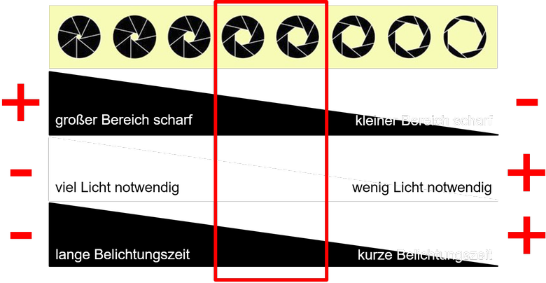 Hier links möchte ich noch einmal kurz ein paar Eigenschaften die Objektive / Objektiveinstellungen gegenüberstellen und sie weiter unten auch versuchen anhand von Bildern und / oder Grafiken zu erläutern.